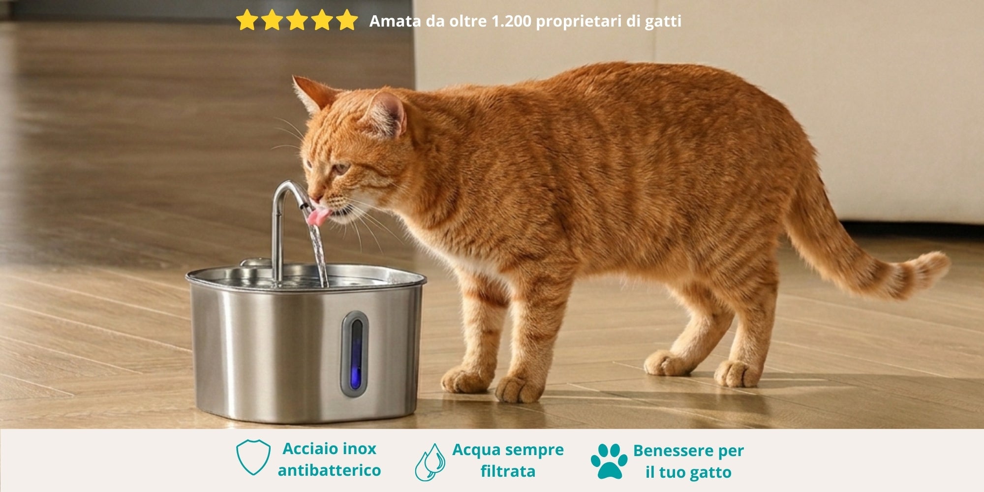 FELUNA - La fontanella in acciaio da 2.2L che invoglia il tuo gatto a bere di più